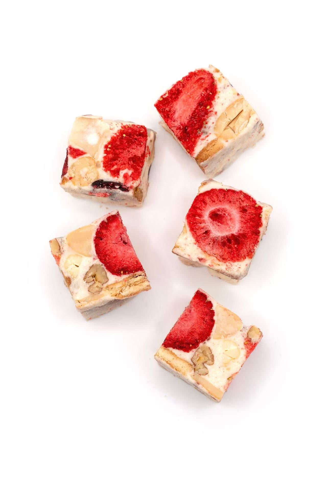 A delightful balance of chewy and crunchy textures, packed with premium nuts, freeze-dried strawberries, and cranberries.
